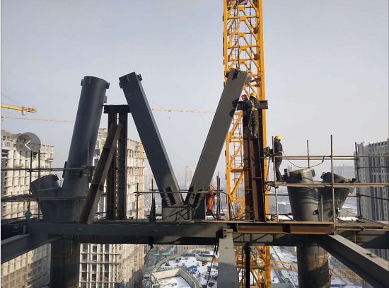 ▼圓形鋼柱吊裝,打造超200米高層,城市風(fēng)光一覽無(wú)遺