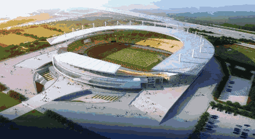 ▼河北奧體中心全貌效果圖,其中左側(cè)圓環(huán)形建筑即為河北奧體中心體育場