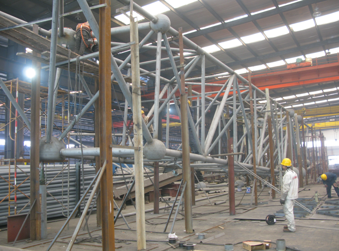 本工程施工量大,質(zhì)量要求高,現(xiàn)場施工周期短,施工中特別選派專業(yè)施工隊伍,選擇素質(zhì)好、技術(shù)水平高、有類似工程施工經(jīng)驗的施工隊伍上崗操作;抽調(diào)具有豐富空間鋼結(jié)構(gòu)施工經(jīng)驗的技術(shù)人員,組建好一個技術(shù)能力過硬的現(xiàn)場施工隊伍。