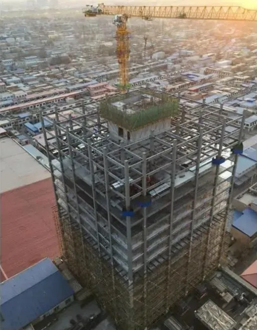 2017年,金環(huán)建設(shè)集團(tuán)作為該項(xiàng)目的總承包施工單位,承接該項(xiàng)目2#、3#樓6層及以上的總體擴(kuò)建施工任務(wù)(1-5層為已建成的商業(yè)裙樓),涵蓋鋼結(jié)構(gòu)、土建等分包工程,建筑面積51838㎡,建筑高度99m,6層至28層為鋼框架—混凝土核心筒結(jié)構(gòu),建成后將成為兩棟28層公寓式住宅。
