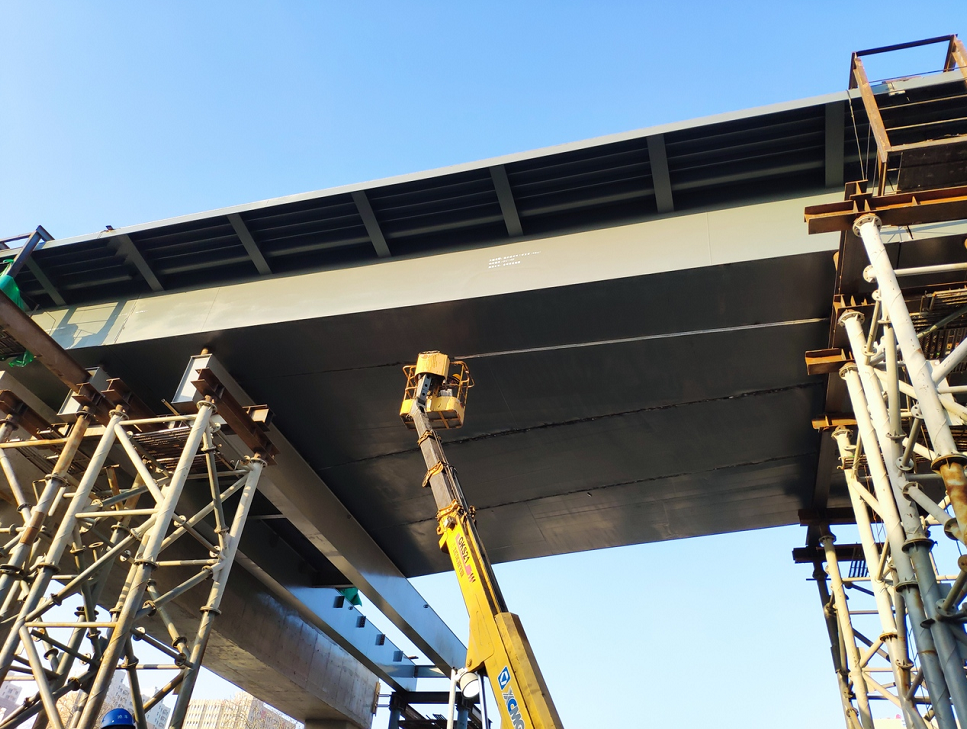 鋼箱梁架設(shè)完成后,下一步將加快對接縫焊接、打磨、探傷檢測等工作,全力以赴沖刺施工,為2021年元旦通車打下良好基礎(chǔ)。