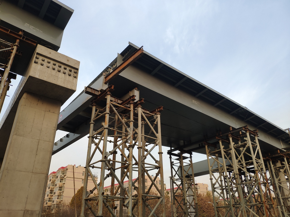 金環(huán)承建 | 槐安路與西二環(huán)互通立交橋(一期)工程順利完成全部鋼箱梁架設(shè)!