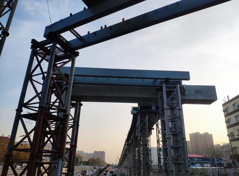 關(guān)鍵詞:金環(huán)建設(shè)承建,槐安路與西二環(huán)互通立交橋,順利完成,鋼箱梁架設(shè)