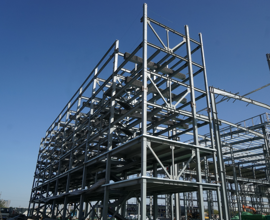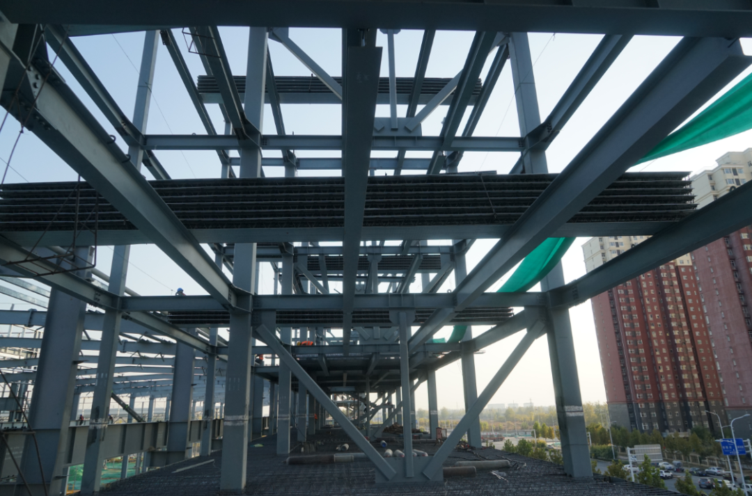 而這次,在金環(huán)建設(shè)集團(tuán)石家莊裝配式研發(fā)生產(chǎn)基地(新廠區(qū))研發(fā)辦公樓建設(shè)過(guò)程中,我們大膽采用了這種目前在國(guó)內(nèi)還比較少見(jiàn)的交錯(cuò)桁架鋼結(jié)構(gòu)體系。這次選用的交錯(cuò)桁架鋼結(jié)構(gòu)體系,是來(lái)自于重慶大學(xué)為我們做的設(shè)計(jì)方案,該體系也是周緒紅院士最早在國(guó)內(nèi)研究和推動(dòng)的新型建筑結(jié)構(gòu)。這種鋼結(jié)構(gòu)體系具備了結(jié)構(gòu)形式簡(jiǎn)單、施工“短、平、快”等優(yōu)點(diǎn),最重要的是節(jié)省空間,非常適用于我們新廠區(qū)辦公樓“長(zhǎng)條形”的占地空間規(guī)劃。