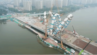 金環(huán)承建 | 徒駭河上“蓮花”綻放!興華路徒駭河大橋項目鋼塔順利合龍