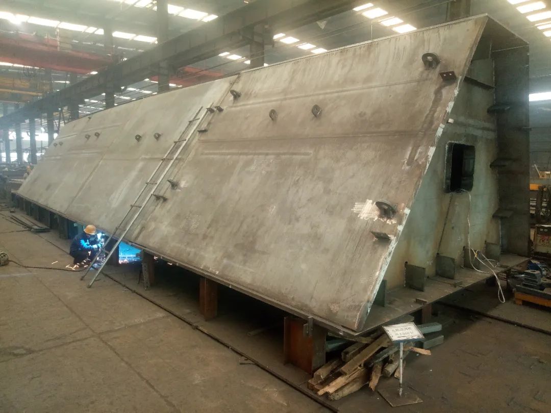 1、鋼塔節(jié)段采用厚板單箱室結(jié)構(gòu),焊縫密集、焊接量很大,且結(jié)構(gòu)組裝精度控制難度大、穩(wěn)定性差,焊接變形控制難度非常大。因此,鋼塔厚板焊接質(zhì)量及焊接變形控制是制作難點和關(guān)鍵點,生產(chǎn)效率也面臨極大挑戰(zhàn)。