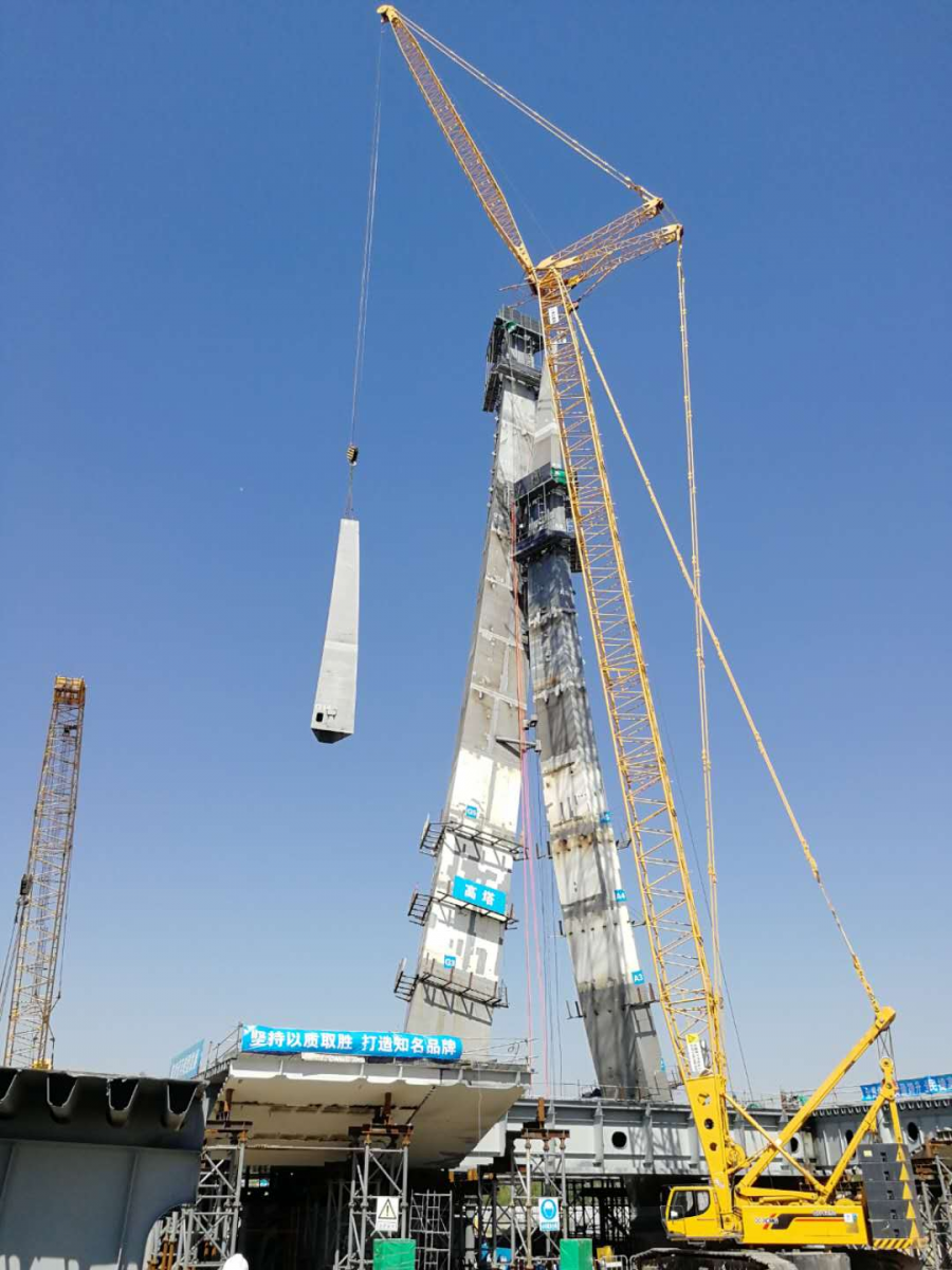瀟河橋上的靈動舞者!高難度弧形橋塔再展金環(huán)技術(shù)水平