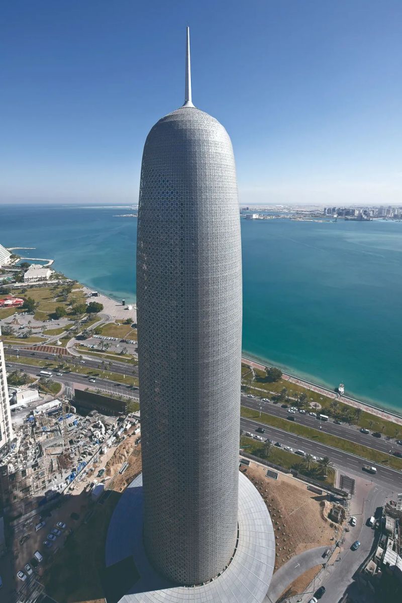 其中,作為多哈三大地標(biāo)性建筑之一的多哈大廈(又名多哈塔- Doha Tower),在眾多建筑物中可謂獨(dú)領(lǐng)風(fēng)騷。它的總高度達(dá)到了238米,由法國努維爾工作室設(shè)計(jì),曾獲得高層建筑與人居委員會(huì)(CTBUH)評(píng)選的2012年“世界最佳高層建筑獎(jiǎng)”。在朝陽的照耀下,多哈大廈閃耀著銀白色的光澤,半透明的質(zhì)地和特色花紋彰顯著整個(gè)建筑物的質(zhì)感和濃濃的阿拉伯風(fēng)格,成為港灣最具特色的建筑之一。