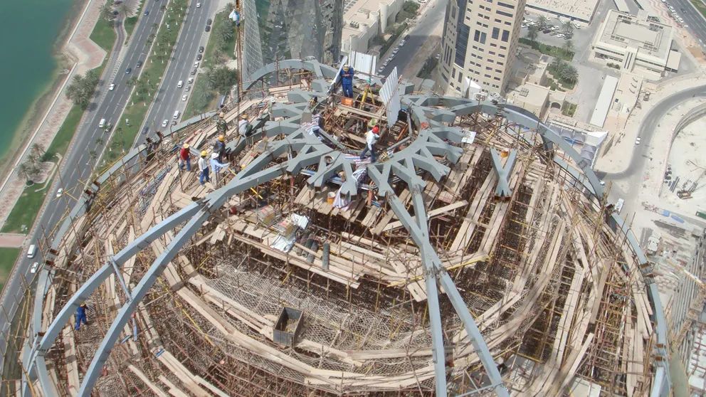 多哈大廈的頂部為鋼結(jié)構(gòu)穹頂,這個(gè)復(fù)雜的鋼結(jié)構(gòu)穹頂來自于金環(huán)建設(shè)集團(tuán)的全力打造。多哈大廈最早于2004年開始籌建,并于2012年正式完工。總建筑面積130000㎡,總高度238m,層數(shù)44層,地下4層,結(jié)構(gòu)形式為筒體編織柱結(jié)構(gòu)。 2006年,金環(huán)建設(shè)集團(tuán)憑借優(yōu)良的質(zhì)量和技術(shù)能力,承接了該項(xiàng)目中復(fù)雜的鋼結(jié)構(gòu)穹頂?shù)闹谱骱桶惭b工程。