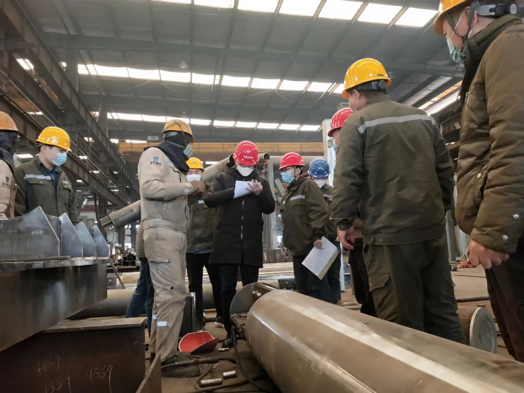在資料審查階段,專(zhuān)家組仔細(xì)查閱了焊工證及焊工報(bào)告、技術(shù)評(píng)審、圖紙變更會(huì)審記錄、檢驗(yàn)計(jì)劃及質(zhì)量記錄( UT,VT)、不合格報(bào)告、客戶(hù)投訴處理記錄,焊接設(shè)備校驗(yàn)記錄等文件。金環(huán)建設(shè)集團(tuán)石家莊工廠質(zhì)控部部長(zhǎng)姚海玲,針對(duì)一些重點(diǎn)問(wèn)題進(jìn)行了介紹和解答。