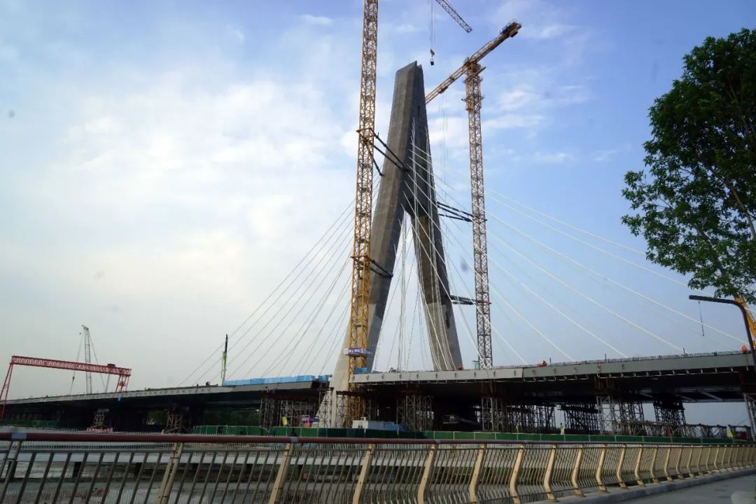 2月25日,該項(xiàng)目成功完成重達(dá)1000噸的鋼箱梁的首次頂推作業(yè),實(shí)現(xiàn)了20天內(nèi)從鋼箱梁進(jìn)場(chǎng)到頂推的目標(biāo)。4月29日,主橋?qū)崿F(xiàn)合龍。目前該項(xiàng)目鋼箱梁已全部鋪設(shè)完畢,正在抓緊進(jìn)行橋面混凝土澆注、斜拉索安裝等工作,爭(zhēng)取實(shí)現(xiàn)5月底通車(chē)的目標(biāo)。