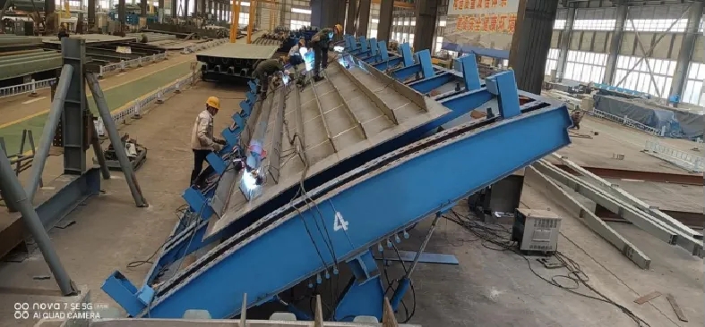 鋼箱橋梁板肋焊接用翻轉(zhuǎn)弧形鋼板可調(diào)曲面弧度的胎架照片和示意