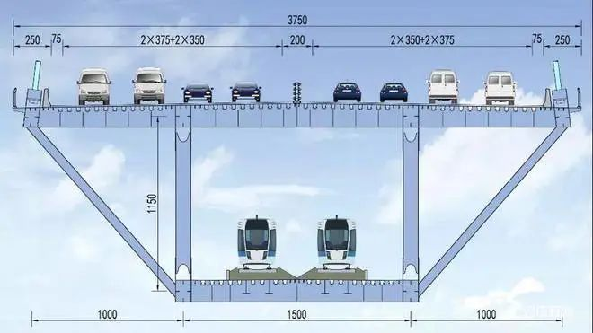 該項目和常見的鋼箱梁橋梁,在結(jié)構(gòu)形式上有很大的差異。它是公軌兩層合建橋梁,即上層為雙向八車道公路,下層為雙線軌道交通,整體為雙層鋼桁梁橋。