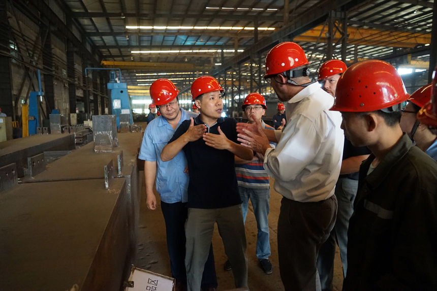 參觀期間,外賓對我公司產(chǎn)品,尤其是梁、柱產(chǎn)品的生產(chǎn)流程、加工方式、質(zhì)量要點很感興趣,并提出一些疑問,張總、童向東博士針對外賓的疑惑進行了針對性答疑。