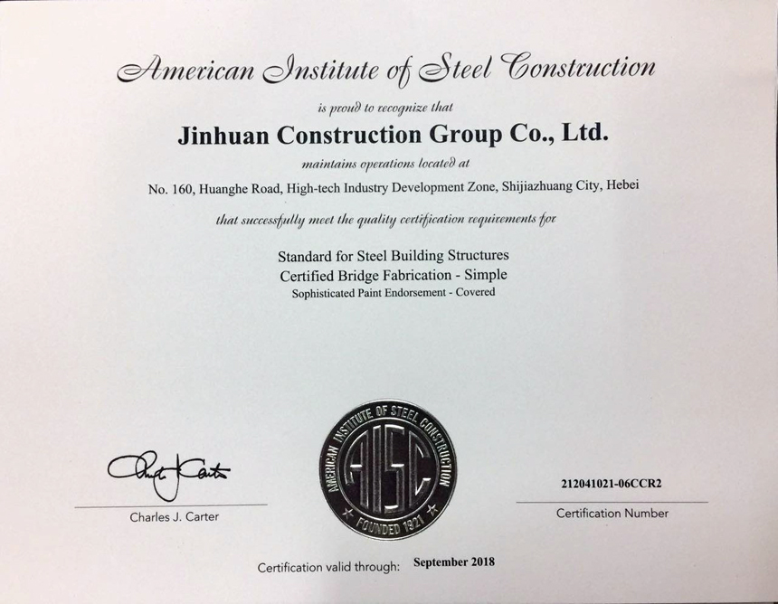近日,我公司成功獲得美國鋼結(jié)構(gòu)協(xié)會(huì)(AISC)頒發(fā)的認(rèn)證證書,認(rèn)證范圍包含建筑鋼結(jié)構(gòu)(Steel Building Structures)認(rèn)證,以及橋梁(Bridge Fabrication)認(rèn)證等范圍。這是自2015年連續(xù)第3年獲得該機(jī)構(gòu)認(rèn)證,是對(duì)金環(huán)建設(shè)集團(tuán)全方位質(zhì)量管理的再一次認(rèn)可,印證了金環(huán)建設(shè)集團(tuán)“締造金牌建筑,創(chuàng)建環(huán)世精品”的價(jià)值追求,向全美國甚至全世界證明金環(huán)建設(shè)集團(tuán)值得信賴。