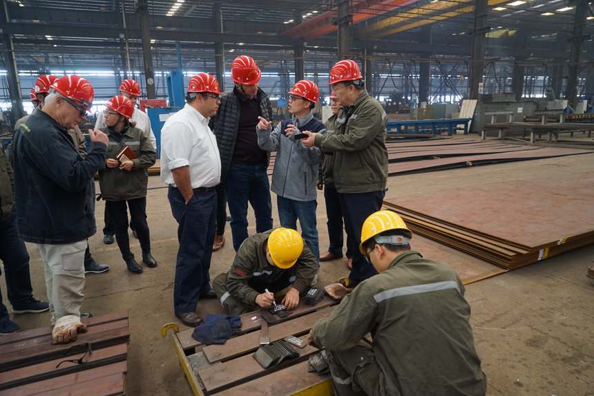 藉此,項(xiàng)目的業(yè)主、設(shè)計(jì)公司、總包、監(jiān)理等各方代表來到金環(huán)總部參加質(zhì)量技術(shù)交底,討論范圍涉及規(guī)范、質(zhì)量追溯體系、質(zhì)量監(jiān)理以及制造全過程的質(zhì)量控制等諸多方面。會(huì)議間歇,張強(qiáng)總經(jīng)理帶領(lǐng)大家參觀制造現(xiàn)場,美方代表對制造過程中的追溯標(biāo)識(shí)、焊材庫、表面處理等關(guān)鍵點(diǎn)進(jìn)行了重點(diǎn)關(guān)注。