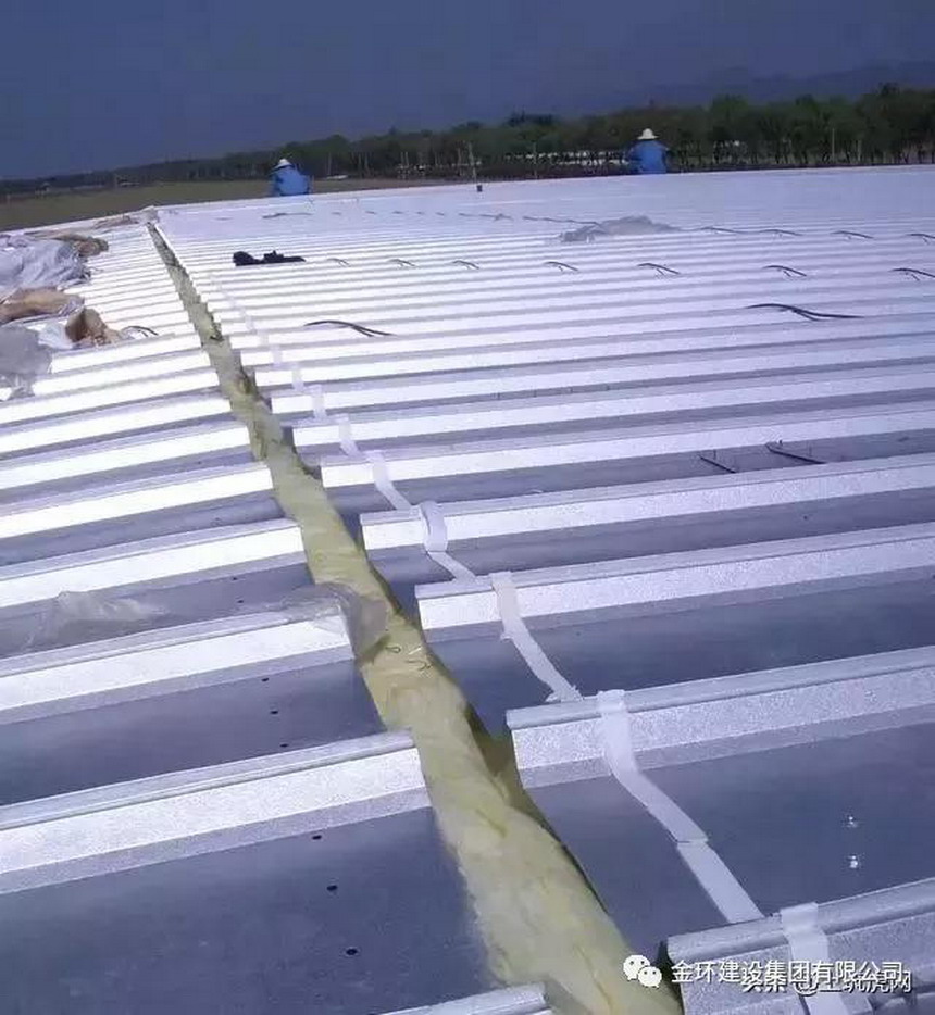 2.5、內(nèi)、外墻板應(yīng)逆主導(dǎo)風(fēng)向鋪設(shè),泛水板之間、包角板之間以及泛水板、包角板與壓型鋼板之間的搭接部位,必須按照要求設(shè)置防水密封材料,山墻泛水板與屋脊板的搭接,必須先安裝山墻泛水板,后安裝屋脊板。