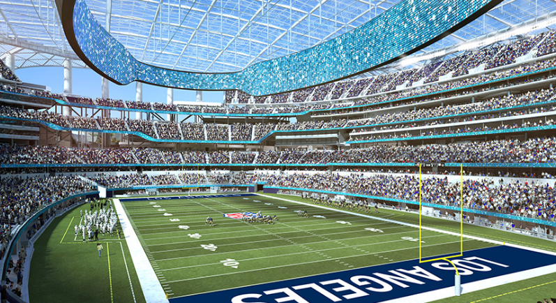 洛杉磯體育場建成后,將成為美國著名橄欖球隊洛杉磯公羊隊(Los Angeles Rams)和洛杉磯閃電隊(Los Angeles Chargers)的新主場,可容納10萬名現(xiàn)場觀眾,承載了一眾粉絲的期待!
