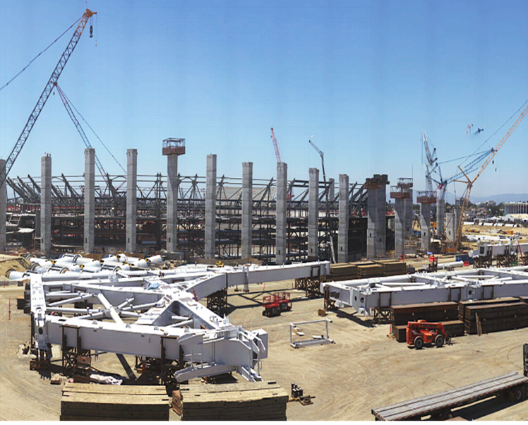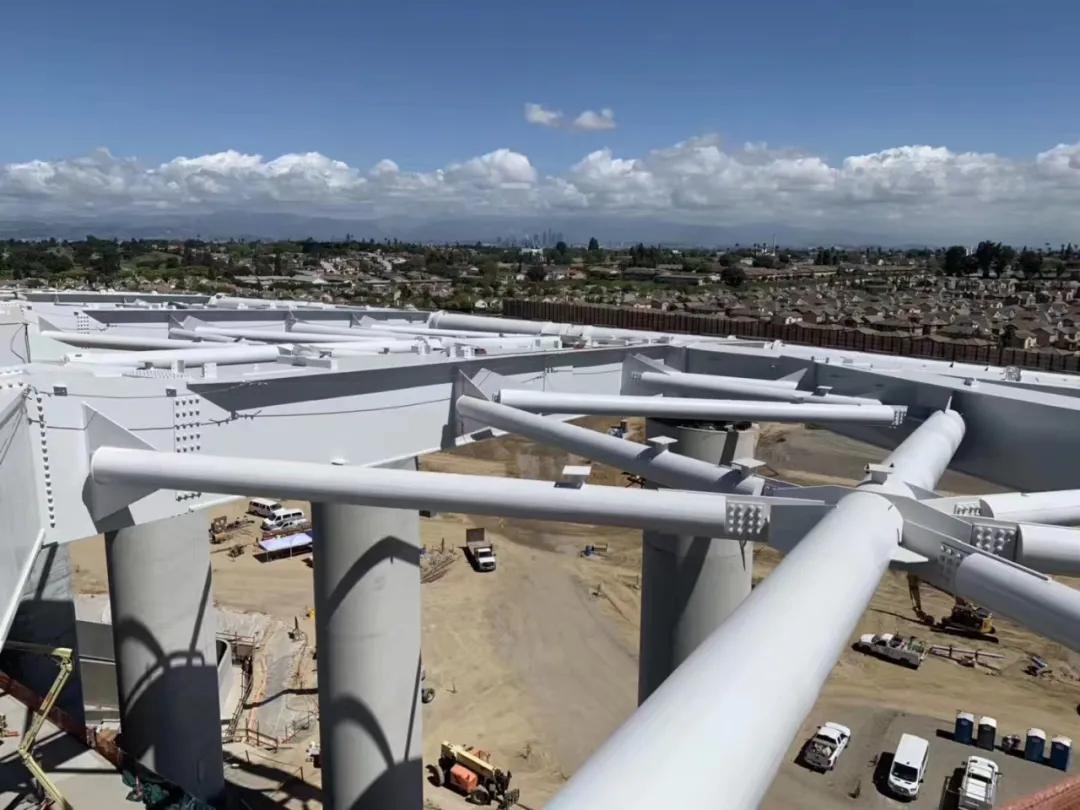 洛杉磯體育場對原料材質(zhì)要求高,且規(guī)格復(fù)雜。板材材質(zhì)均為A572-50(美國材料與試驗(yàn)協(xié)會標(biāo)準(zhǔn)高強(qiáng)度低合金鈮-釩結(jié)構(gòu)鋼板),厚度最大達(dá)到101mm。管材材質(zhì)均為API 5L X52(美國石油協(xié)會制定的管線管標(biāo)準(zhǔn))等級PSL1,最大管徑1219mm。
