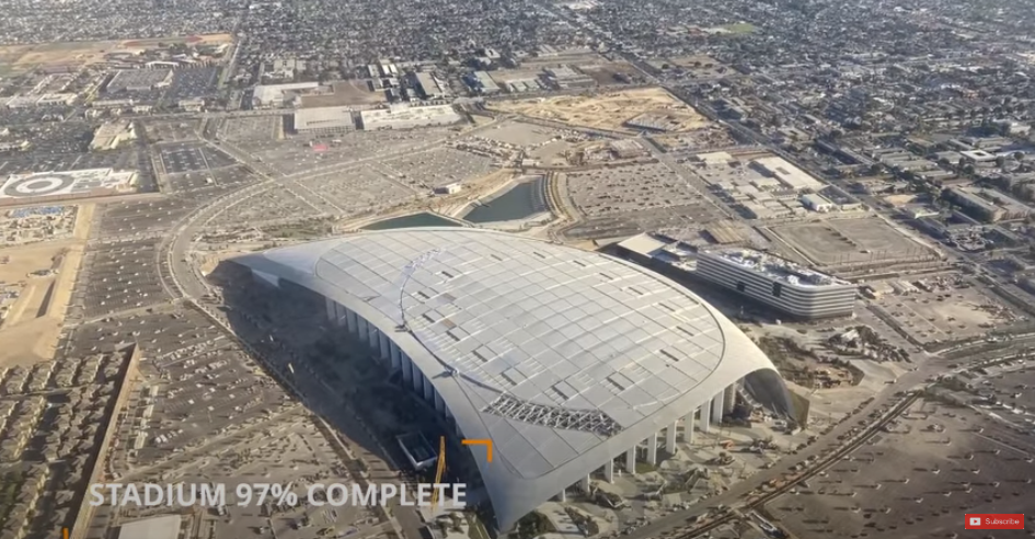 洛杉磯體育場現(xiàn)場施工已經(jīng)完成了97%。