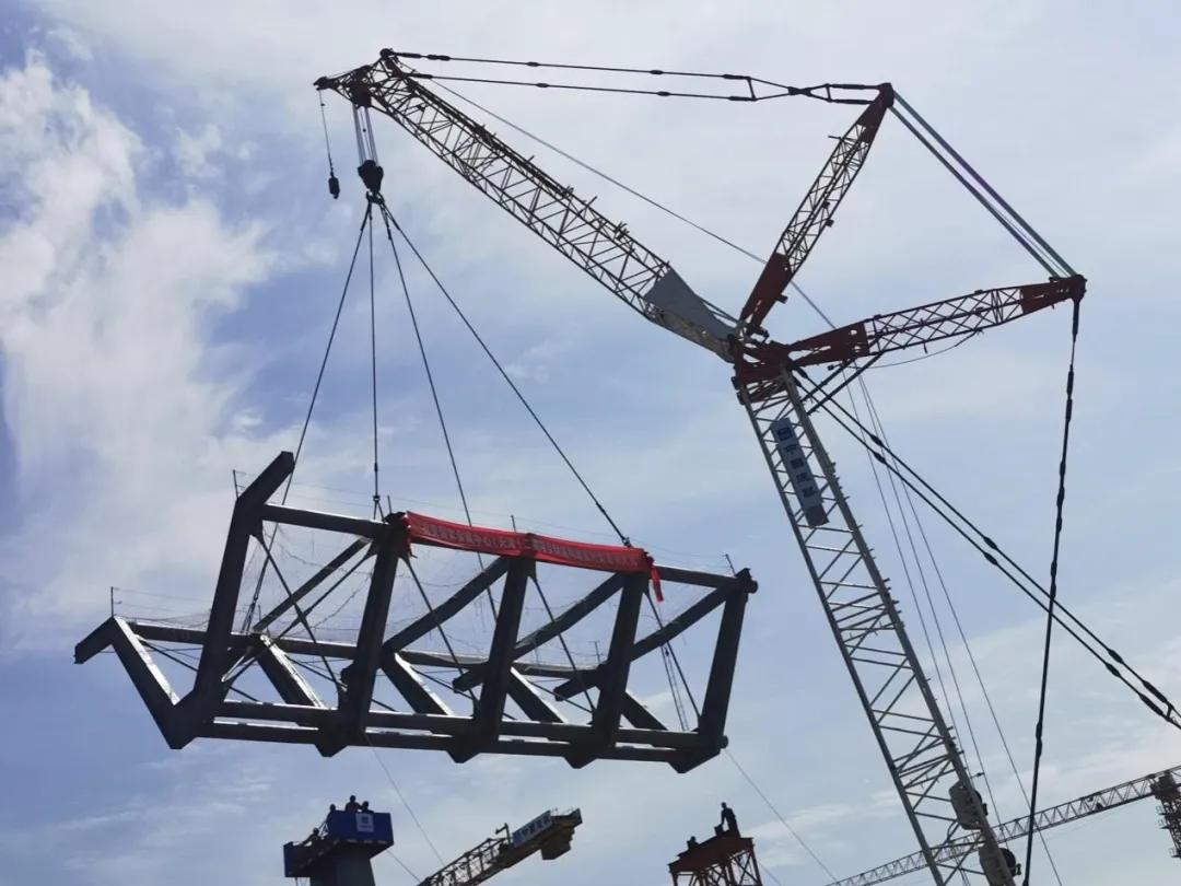 8月10日,該項目鋼結構首吊儀式在工地現(xiàn)場順利舉行。當天首吊的這根鋼結構就是來自金環(huán)建設集團的生產制造。這根長24米、寬15.7米、高6.6米、重68噸的屋面桁架的成功吊裝,作為會展中心二期項目建設重要的里程碑節(jié)點,標志著項目進入全面快速建設階段。