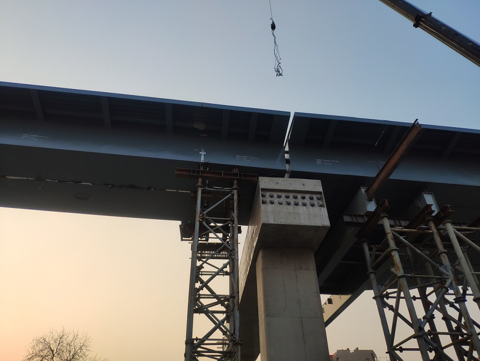 ▲最后一節(jié)鋼箱梁吊裝現(xiàn)場