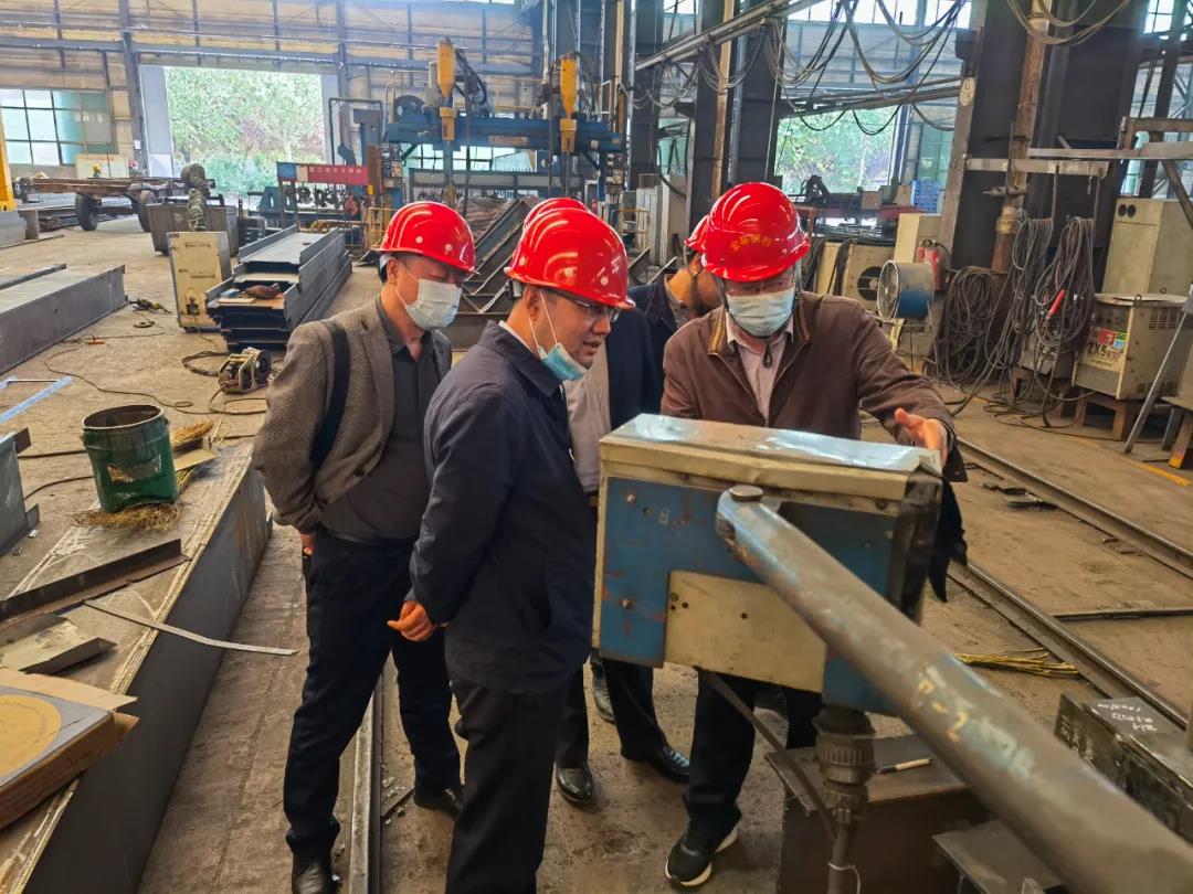 座談會結束后,石家莊鐵道大學各位教授專家一行來到金環(huán)建設集團石家莊工廠。在生產現場,他們參觀查看了各項生產流程、生產設備和構件產品,實地感受金環(huán)的生產制造組織安排和質量控制措施。