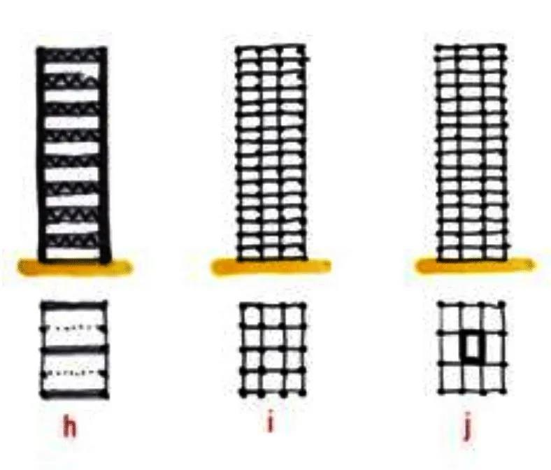從整體上看,在豎向平面上,每隔一層設(shè)置桁架;在橫向平面上,相鄰框架的桁架在上下層間交錯(cuò)布置,這就是我們說的“交錯(cuò)桁架鋼結(jié)構(gòu)體系”。