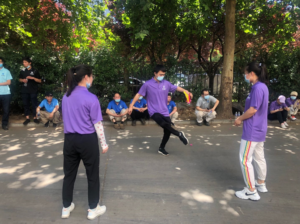 在“毽球”、“無敵風(fēng)火輪”比賽中展示默契與配合。