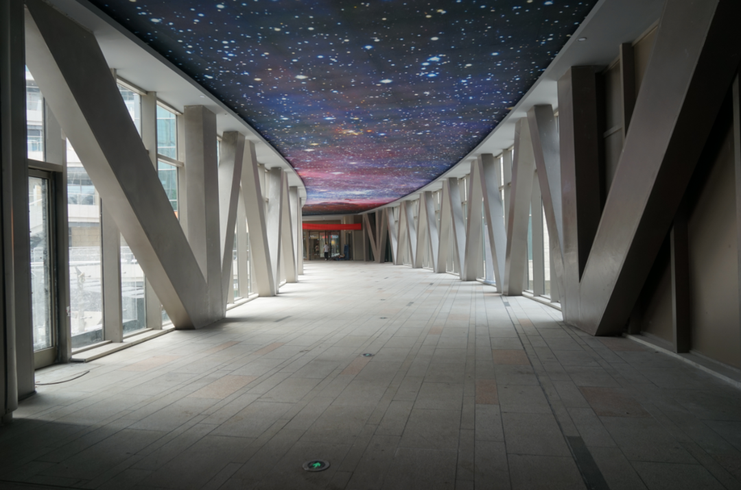 整個“皇冠”位于西北入口建筑物的接近頂端部位,高度在36-40米之間。“皇冠”這個名稱生動得詮釋了它美觀華麗的外觀,如果說整個建筑物猶如一個美麗的“花架”,那這個“皇冠”造型更讓“花架”彰顯靈巧和韻味。
