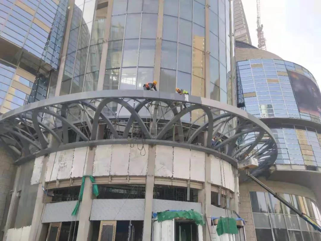三個單體均為原有構(gòu)件的外圍裝飾性構(gòu)件,由于內(nèi)部構(gòu)件已經(jīng)完成,加大了我們的吊裝難度及現(xiàn)場焊接的難度。高空作業(yè),空間狹小,對我們安裝是極大的考驗。現(xiàn)場安裝人員通過提前規(guī)劃安裝作業(yè)方案,制定吊裝策略方案,克服種種困難,使得現(xiàn)場的安裝工作有序完成。