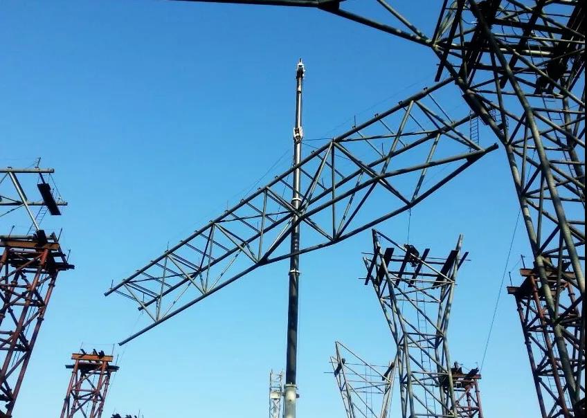 由于工期緊張,鋼結(jié)構(gòu)體量大,現(xiàn)場安裝采用兩個區(qū)域進行同步開展,多臺機械設(shè)備配合施工。