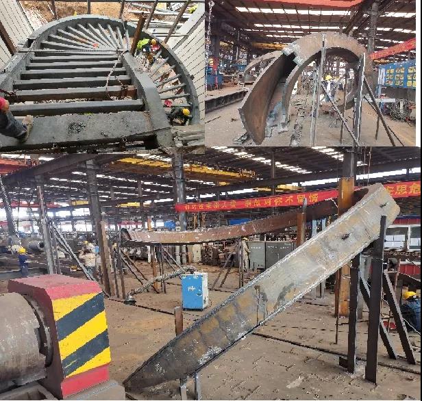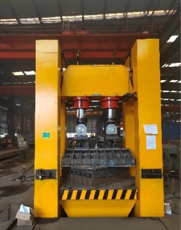 公司利用相關(guān)技術(shù),研制了640噸雙頭裝配式轉(zhuǎn)模壓力機設(shè)備荷載產(chǎn)生壓力為320噸/缸*2缸。設(shè)備適應(yīng)于壓制空間扭曲箱型鋼結(jié)構(gòu)或空間扭曲焊接異型鋼結(jié)構(gòu)的640噸雙頭轉(zhuǎn)模壓力機,能滿足板材加工范圍為:板材寬度在400~1500mm,板材厚度在3~40mm,板材長度不限,板材壓制弧度不限的施工設(shè)備裝置。