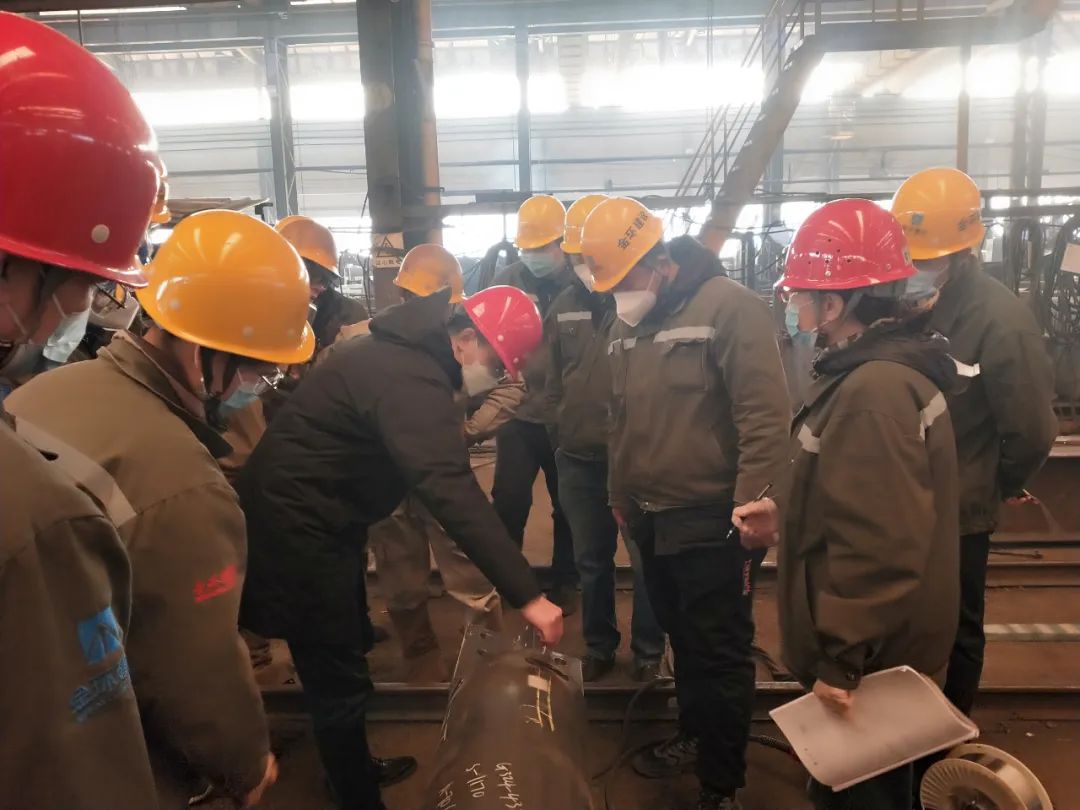 在資料審查階段,專家組仔細(xì)查閱了焊工證及焊工報告、技術(shù)評審、圖紙變更會審記錄、檢驗(yàn)計(jì)劃及質(zhì)量記錄( UT,VT)、不合格報告、客戶投訴處理記錄,焊接設(shè)備校驗(yàn)記錄等文件。金環(huán)建設(shè)集團(tuán)石家莊工廠質(zhì)控部部長姚海玲,針對一些重點(diǎn)問題進(jìn)行了介紹和解答。