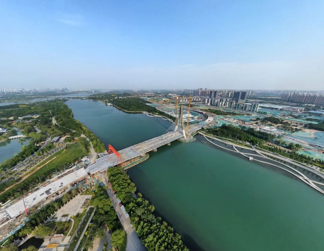 初夏時(shí)節(jié)的太平河沿岸,碧水藍(lán)天,花開成海,風(fēng)光旖旎,高102.75米的學(xué)府路跨太平河橋梁主塔矗立在太平河之上,雄偉壯觀,68根斜拉索正在逐一安裝,宛如豎琴琴弦,正在奏響城市更新的奮進(jìn)曲。該橋建成后,還將成為省內(nèi)首個(gè)水幕景觀斜拉橋,在完善交通配套的基礎(chǔ)上,極大程度地提高城市“顏值”,成為新晉網(wǎng)紅打卡地。