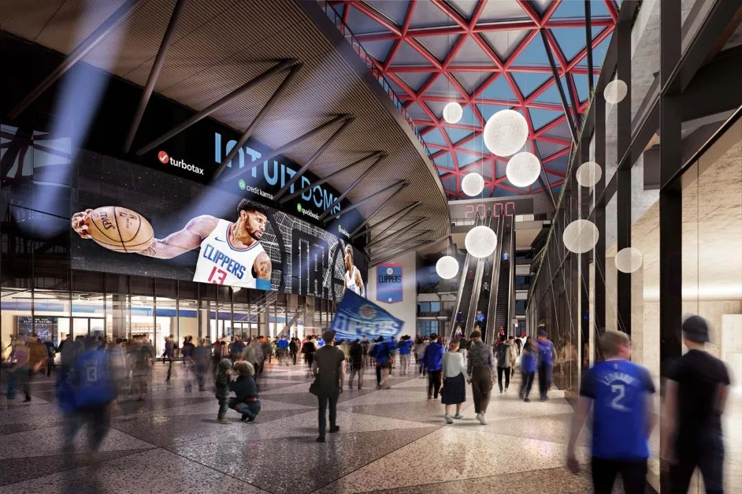 這座籃球館位于美國(guó)加利福尼亞州洛杉磯市英格伍德,總體占地面積11萬平方米,預(yù)計(jì)投資12億美金,建設(shè)一座可容納18500個(gè)座位的體育館。同時(shí),該場(chǎng)館還包括了練習(xí)場(chǎng)、運(yùn)動(dòng)醫(yī)學(xué)診所、團(tuán)隊(duì)辦公室、零售空間和一個(gè)大型室外廣場(chǎng),建成后它將作為美國(guó)職業(yè)籃球隊(duì)洛杉磯快船隊(duì)的主場(chǎng)。