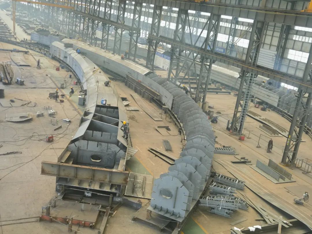 金環(huán)鋼結(jié)構(gòu)公司石家莊工廠技術(shù)部針對項目特點和難點,制定了科學(xué)詳細的制作工藝,為生產(chǎn)加工過程中各個工序及技術(shù)要點提供了有力指導(dǎo)。金環(huán)建設(shè)集團邯鄲分公司組織經(jīng)驗豐富、技術(shù)水平過硬的一線工人師傅,積極投入生產(chǎn),在各個生產(chǎn)加工環(huán)節(jié)精細質(zhì)量控制,并通過預(yù)拼裝等方式,確保構(gòu)件加工質(zhì)量。