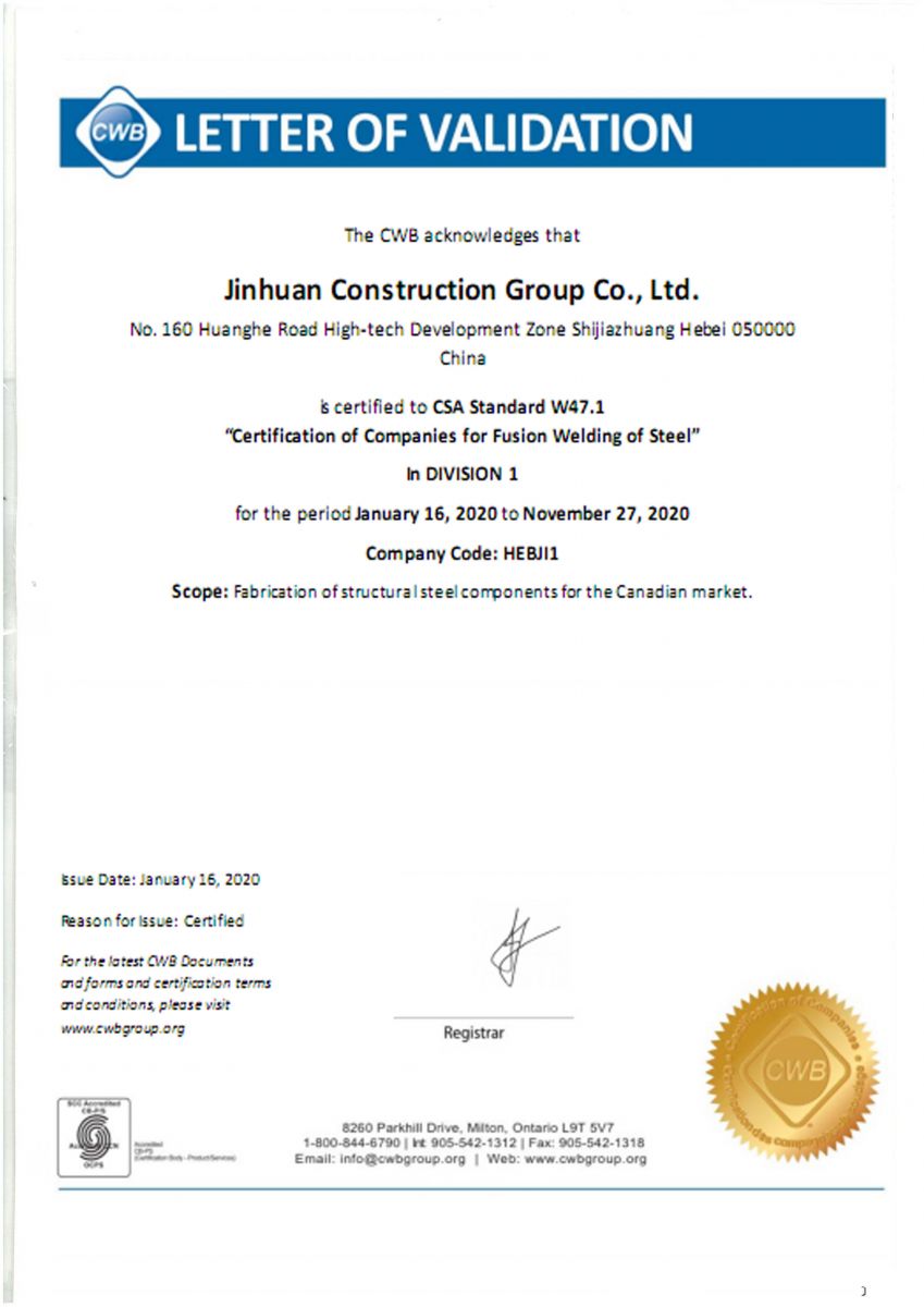 高標(biāo)認(rèn)證金環(huán)獲得美國鋼結(jié)構(gòu)協(xié)會AISC認(rèn)認(rèn)證,加拿大焊接協(xié)會CWB以及歐盟EN 1090和歐盟EN 3834等多項(xiàng)國際認(rèn)證。